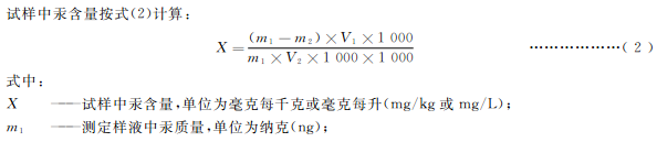 分別吸取樣液和試劑空白液各5.0mL置于測汞儀的汞蒸氣發(fā)生器的還原瓶中,以下按照12.4“連接抽氣裝置…中…同時做空白試驗”進行操作。將所測得吸光度值,代入標準系列溶液的一元線性回歸方程中求得試樣溶液中汞含量。