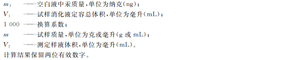稱取固體試樣0.2g~1.0g(精確到0.001g),新鮮樣品0.5g~2.0g或液體試樣吸取1mL~5mL稱量(精確到0.001g),置于消解內(nèi)罐中,加入5mL硝酸浸泡過夜。蓋好內(nèi)蓋,旋緊不銹鋼外套,放入恒溫干燥箱,140℃~160℃保持4h~5h,在箱內(nèi)自然冷卻至室溫,然后緩慢旋松不銹鋼外套,將消解內(nèi)罐取出,用少量水沖洗內(nèi)蓋,放在控溫電熱板上或超聲水浴箱中,于80℃或超聲脫氣2min~5min趕去棕色氣體。取岀消解內(nèi)罐,將消化液轉(zhuǎn)移至25mL容量瓶中,用少量水分3次洗滌內(nèi)罐,洗滌液合并于容量瓶中并定容至刻度,混勻備用;同時作空白試驗。