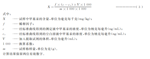 17.4.2甲基汞標準儲備液(200g/mL,以Hg計):準確稱取0.0250g氯化甲基汞,加少量甲醇溶解用甲醇溶液(1+1)稀釋和定容至100mL。于4℃冰箱中避光保存,可保存兩年。或購買經(jīng)國家認證并授予標準物質(zhì)證書的標準溶液物質(zhì)
