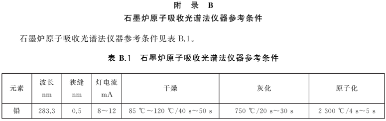 注:可根據(jù)儀器的靈敏度及樣品中鉛的實(shí)際含量確定標(biāo)準(zhǔn)系列溶液中鉛的質(zhì)量濃度。