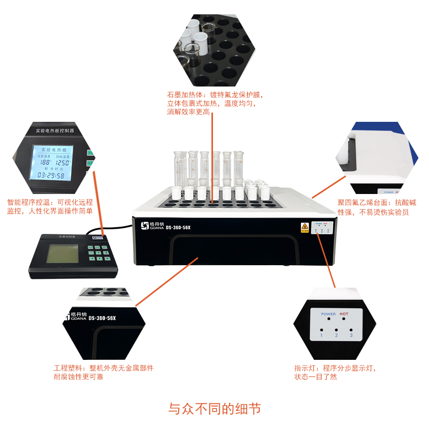 DS-360-56X線控石墨消解儀(56位)主要用于實(shí)驗(yàn)室樣品前處理中進(jìn)行加熱、趕酸、消解的設(shè)備,比實(shí)驗(yàn)電熱板效率高、成本消耗低,石墨消解儀采用高純石墨作為加熱體,包裹式加熱,溫度均勻充分消解樣品。多孔的設(shè)計(jì),輕松實(shí)現(xiàn)了批量的處理樣品,拋棄傳統(tǒng)單一的消解模式,是您樣品消解的必備實(shí)驗(yàn)室裝備之一。