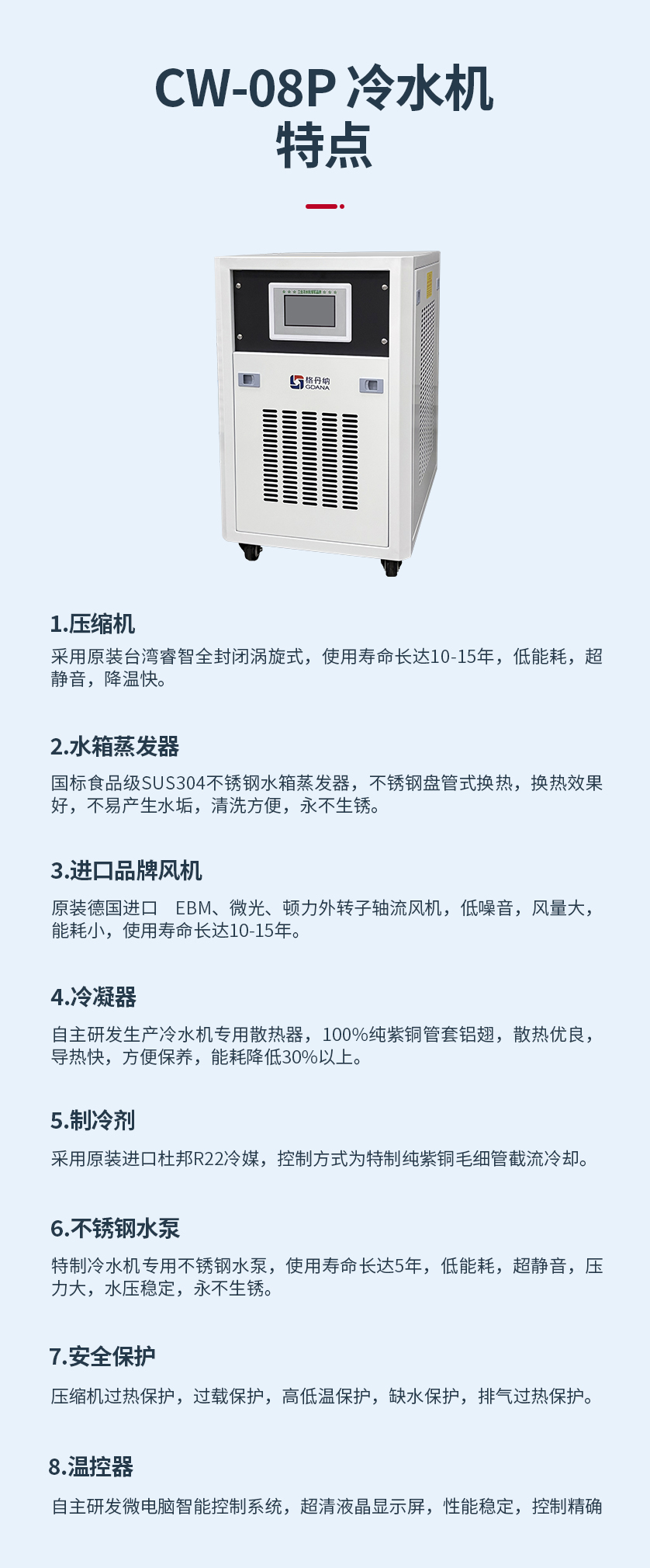 特制冷水機專用不銹鋼水泵,使用壽命長達5年,低能耗,超靜音,壓力大,水壓穩(wěn)定,永不生銹。