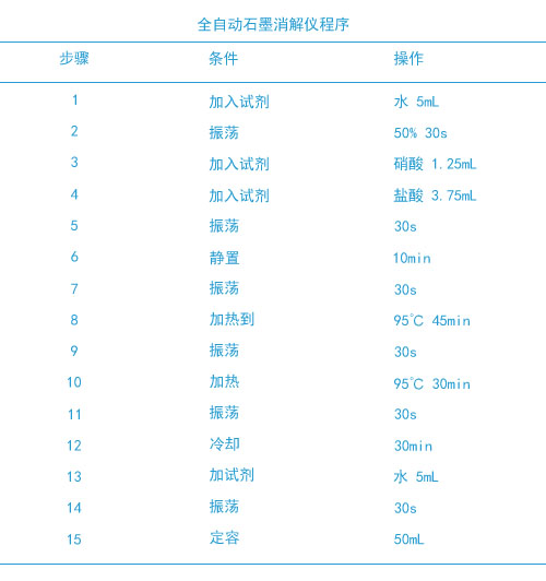 本文章采用全自動(dòng)石墨消解儀作為無機(jī)樣品前處理,采用濕法消解原理,可將復(fù)雜的試驗(yàn)步驟全部程序化,只需電腦上設(shè)置好一鍵啟動(dòng)就可以自動(dòng)加酸、搖勻、振蕩、加酸、趕酸、消解、冷卻、定容。下面根據(jù)《土壤質(zhì)量總汞、總砷、總鉛的測(cè)定原子熒光法》標(biāo)準(zhǔn)方法處理土壤樣品。