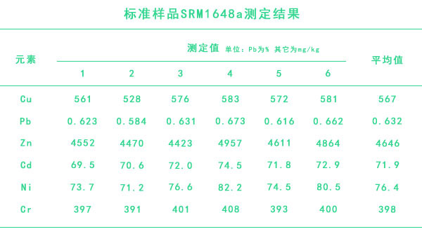 標準樣品SRM1648a測定結(jié)果