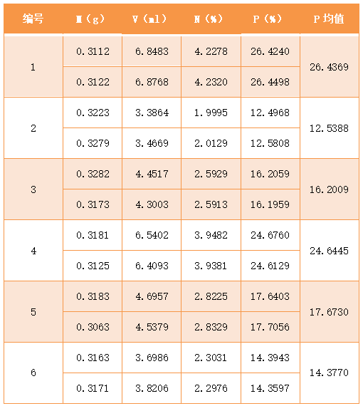 3)消解完成后,冷卻至室溫,用凱氏定氮儀進(jìn)行蒸餾滴定,打印出檢測結(jié)果。同時做空白實驗。