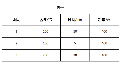 精確稱取切碎后的大蔥樣品 0.1g(精確至 0.1mg),置于消解罐底部,加入 8mL 硝酸,靜置 20min 左右,組裝消解罐,按照如下設置參數(shù)進行消解實驗: